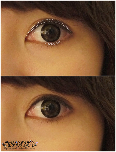 下眼線的部分就是在眼球下方用淺淺的咖啡色眼線膠再稍微描繪