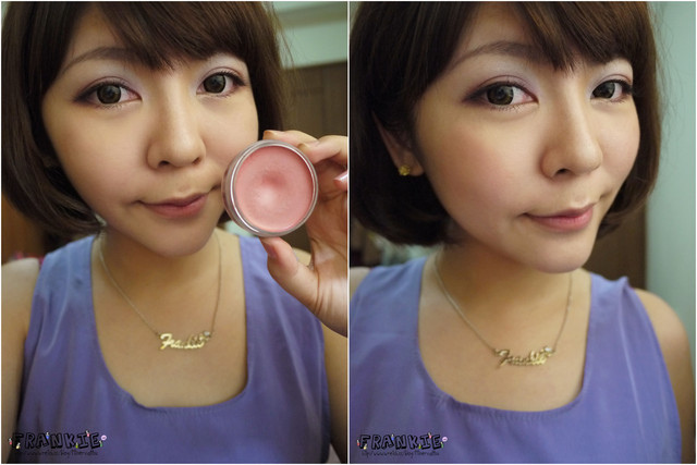 這樣一來就算少了完整的眼線,眼睛依然會自然有神再來我使用霜狀的腮紅點在笑肌