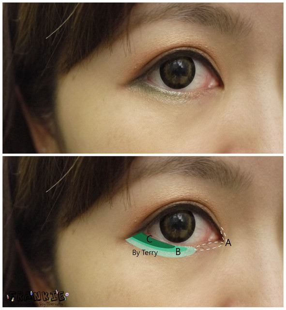 3.畫上一條細細眼線,再用C暈開眼尾柔和線條