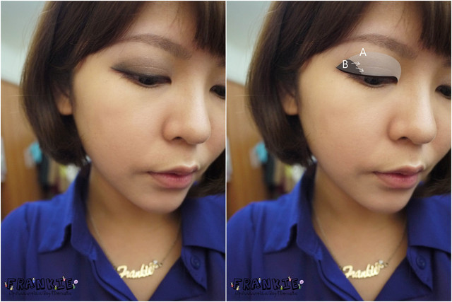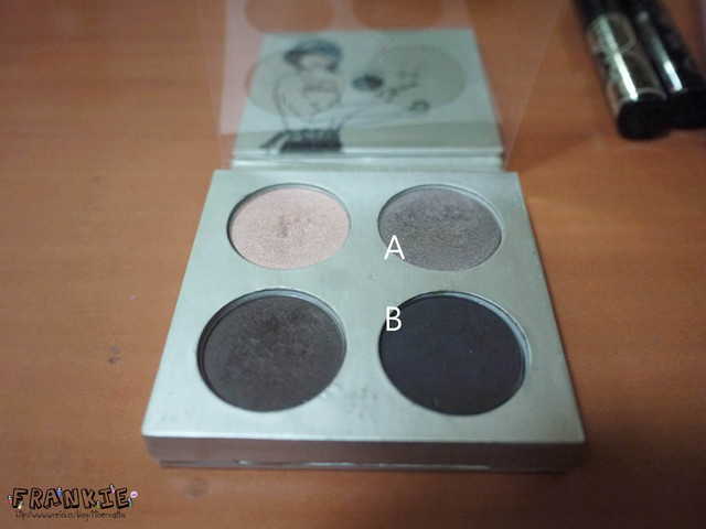 今天使用的A是帶一點珠光的灰色眼影,B也是帶一點珠光感的黑色
