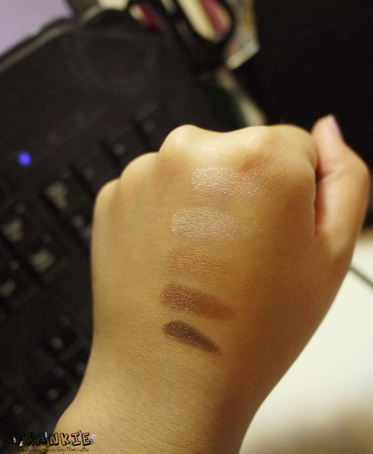 雖說又是盤大地色,但是他顯色度滿好得,亮粉質感也很佳,是盤很好發揮的眼影盤順便試個色給大家看看