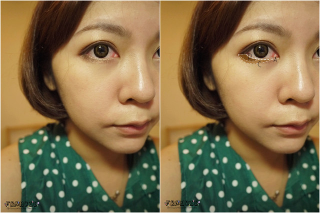 之後用咖啡色眼線膠補滿睫毛根部就可以了,不用刻意拉長