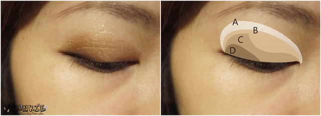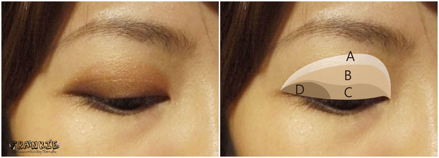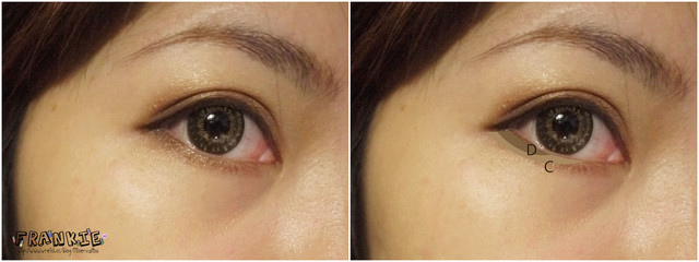 1.用C掃上下眼線3/2處,眼中較寬眼尾較窄