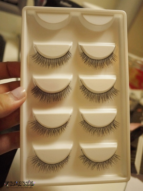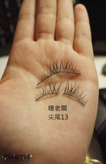 這樣上揚眼線就完成了,接著我使用眼中濃密款的睫老闆尖尾13剪成兩半分別貼在眼尾