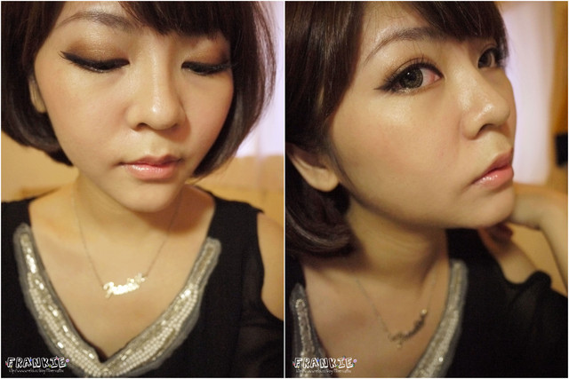 眼尾的假睫毛可以不用順著眼型,略往上貼一點就有上揚感,但要記得把空隙用眼線筆補滿接著在顴骨斜斜的刷上腮紅,也是往上的感覺,再擦上裸色lavshuca PK4唇膏就完成了