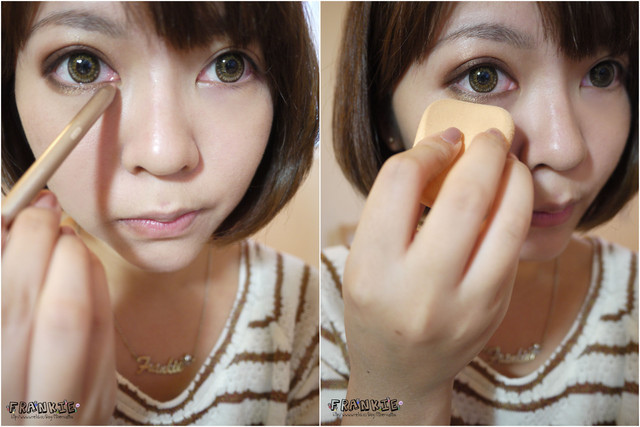 用粉餅稍微撲過眼睛周圍,讓整個眼妝保持乾淨