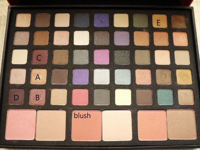 A為淺金橘色/B是淺磚紅/C是顏色非常飽和的紫紅色/D為顏色較深的酒紅色/E微光澤感強烈的金色首先