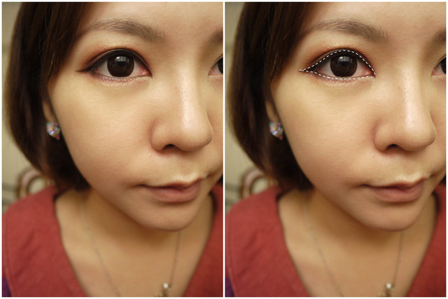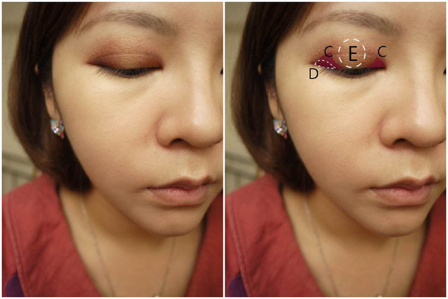 5.最後用E點在眼皮上,柔和眼頭眼尾的交界處