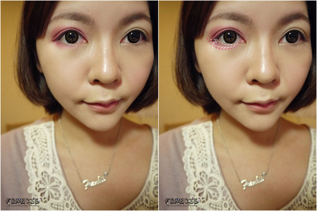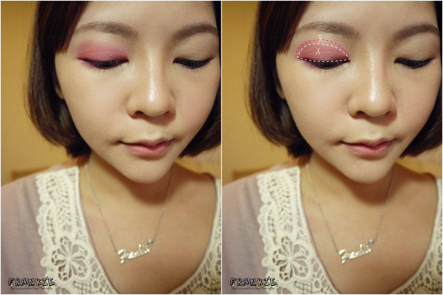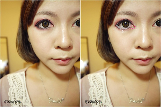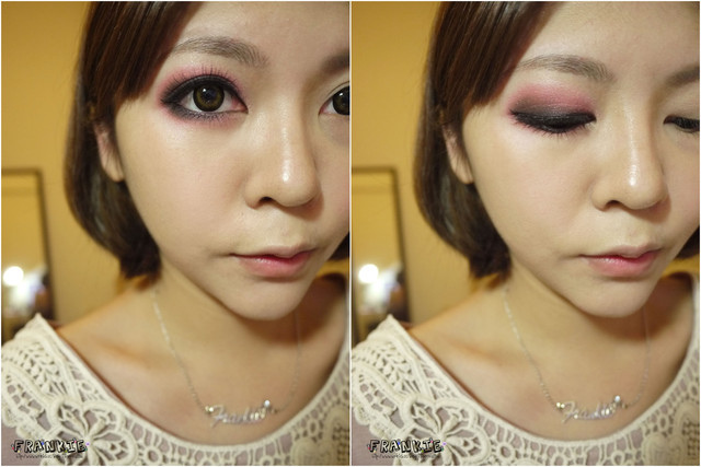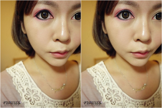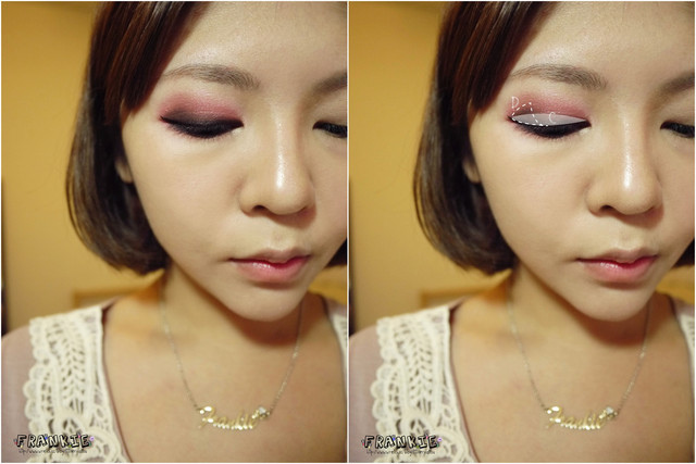 可能Frankie覺得這個妝有點斜斜的貓眼所以從眼尾上坡後半段就加高了