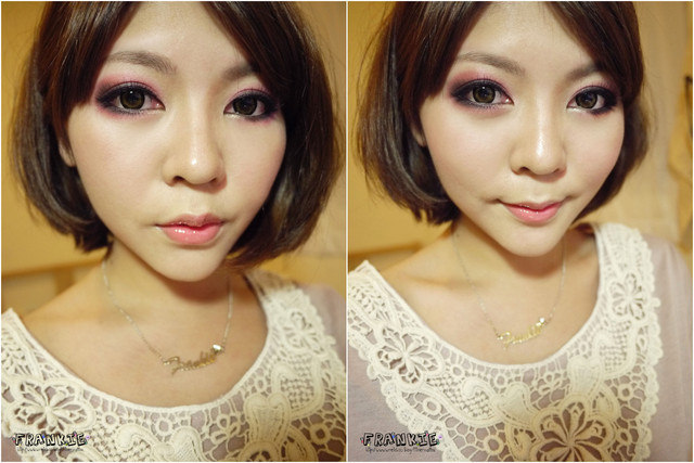 這樣眼妝部分就完成了最後在擦上同樣桃紅色系的腮紅angelika