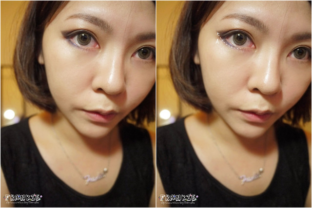 但我覺得這個眼妝是強調眼影的暈染,如果使用整副假睫毛就會遮住眼影,所以只使用半副貼在眼尾