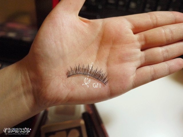 接下來刷上睫毛膏後我使用一副束狀感的假睫毛將他對剪成兩半