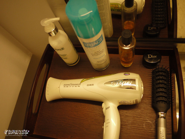 梳妝台備有吹風機,臉部保濕噴霧,身體乳,護髮油跟臉部乳液方便大家漂浮完之後做保養