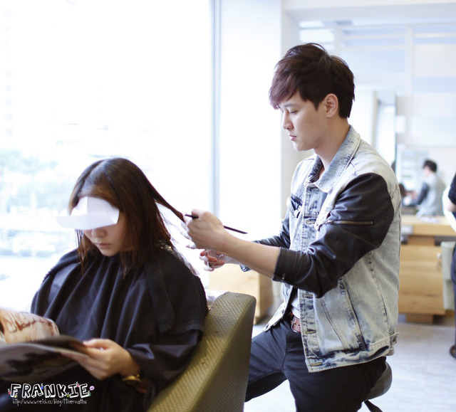Aaron決定先幫我剪去髮尾乾枯的部分再進行後續染燙的部分