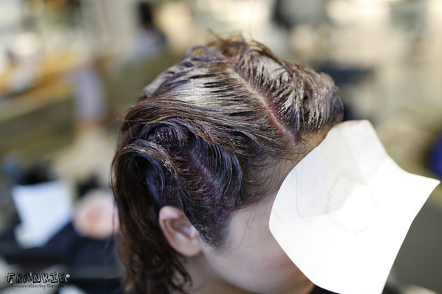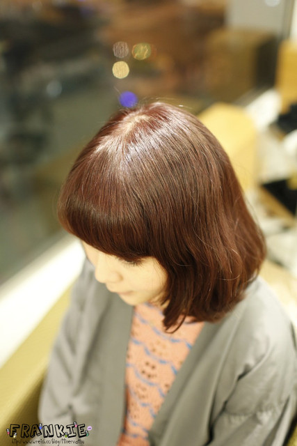 沖玩水後就可以看到頭髮呈現微微自然的彎曲了!!接著Aaron幫我選了個可以讓氣色更好的粉紅色