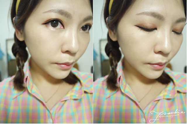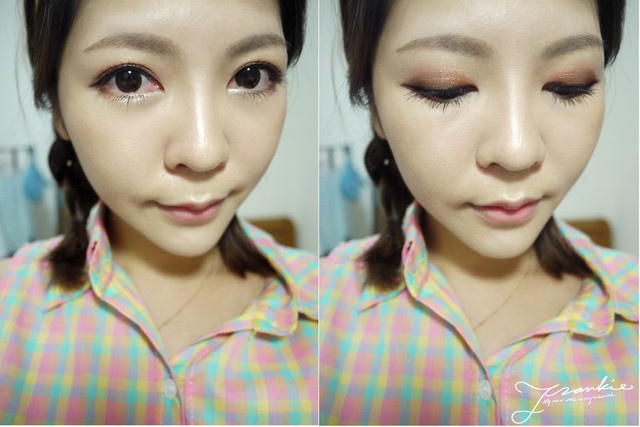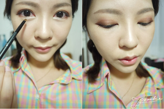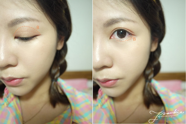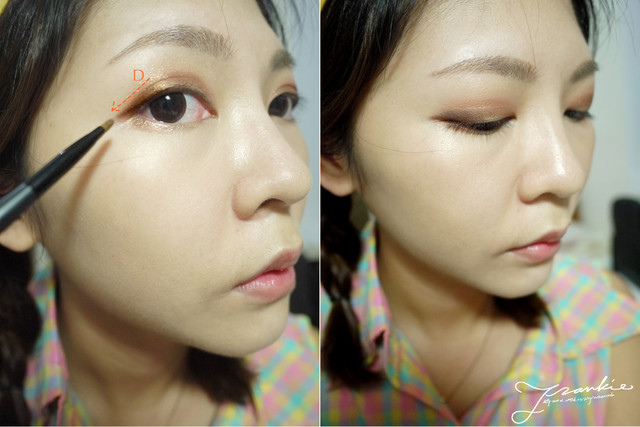 最後使用A打亮眼頭處,在使用E點在上眼皮中間增加整個立體度眼影就完成了