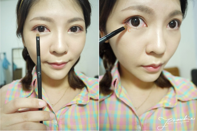 再來下眼影處會拿較小的刷子連接上眼影同樣也是使用C刷在下眼尾後3/1處